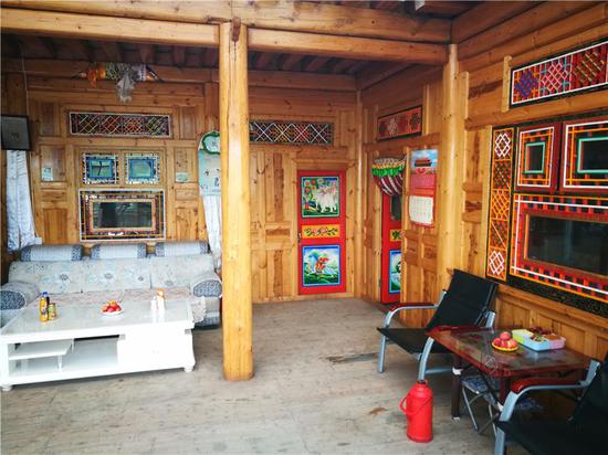 走進(jìn)安果村村民貢保杰布的家中,記者看到了非常干凈的藏式風(fēng)格民宿包間。貢保杰布今年50歲,妻子貢去乎吉與他同齡,有兩個(gè)兒子:貢保熱旦、貢保杰,4人都在家務(wù)農(nóng)。他家中共有耕地8畝,草場(chǎng)面積350畝,家中有23頭編雌牛。2018年,貢保杰布將自己的庭院打造成鄉(xiāng)村民宿,在旅游旺季,按照每間客房300元的收費(fèi)標(biāo)準(zhǔn),一年接待游客收入達(dá)到5000元左右。